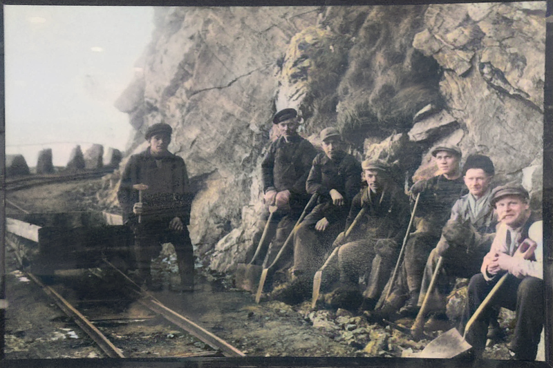 Et bilde viser byggingen av en gammel og nå utfaset vei inn til Bleik fra Andenes. Idag er den erstattet av en tunnel (som snart erstattes av en ny tunnell). Et annet bilde viser gårdsdrift og et tredje et gruppebilde. Det fjerde var en båt på havet. Jeg tok bilde med telefonen av de tre første, ikke båtbildet, og kvaliteten blir da med glans i bildet fra lyset i rommet. Men ser du vekk fra det, klarer du likevel å se hva bildet handler om.