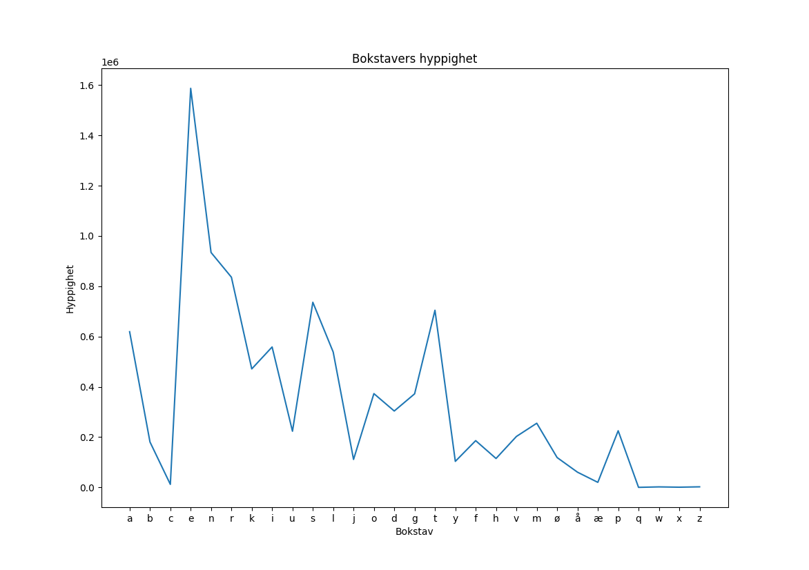 Det norske alfabetet har 29 bokstaver, og i norske tekster, bøker og artikler er det noen bokstaver som blir mer brukt enn andre. Bokstavene e r n t d a i s er for eksempel ofte det mest brukte, med e som en soleklar vinner. Det samme bekrefter ordlisten fra norsk scrabbleforbund, med 1.587.179 tilfeller: