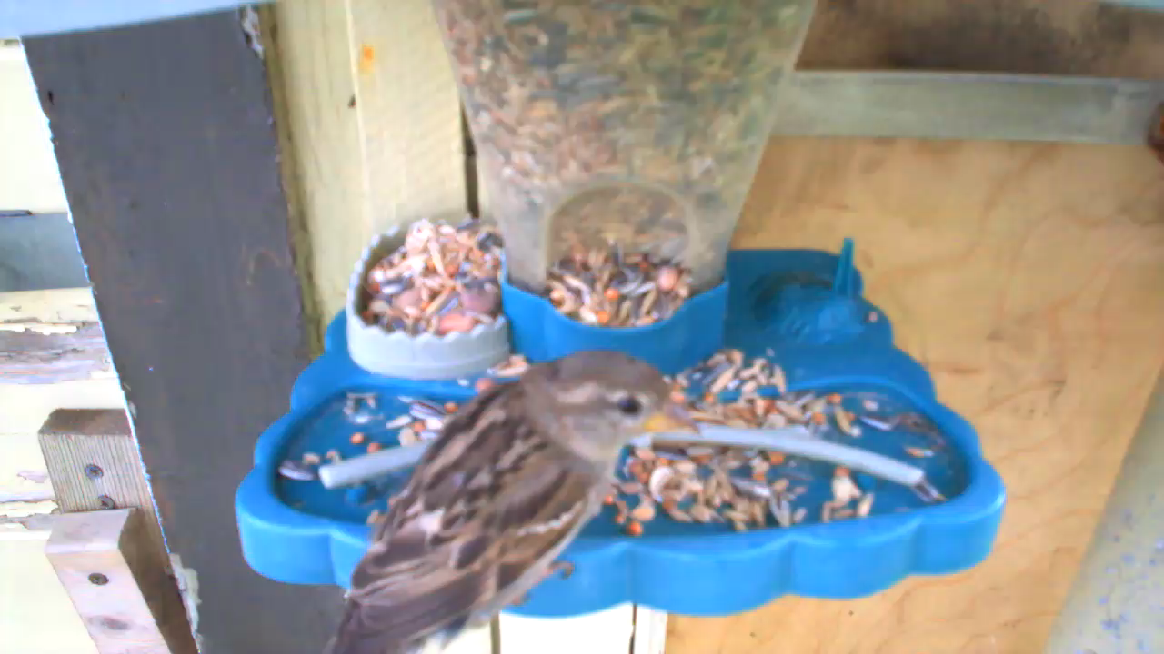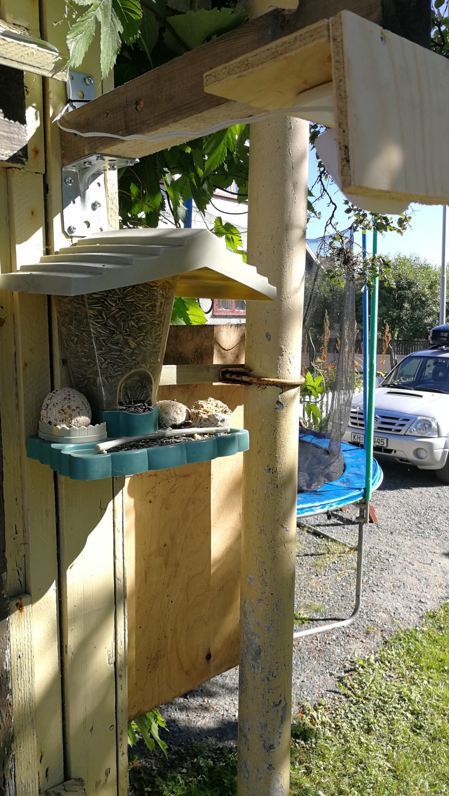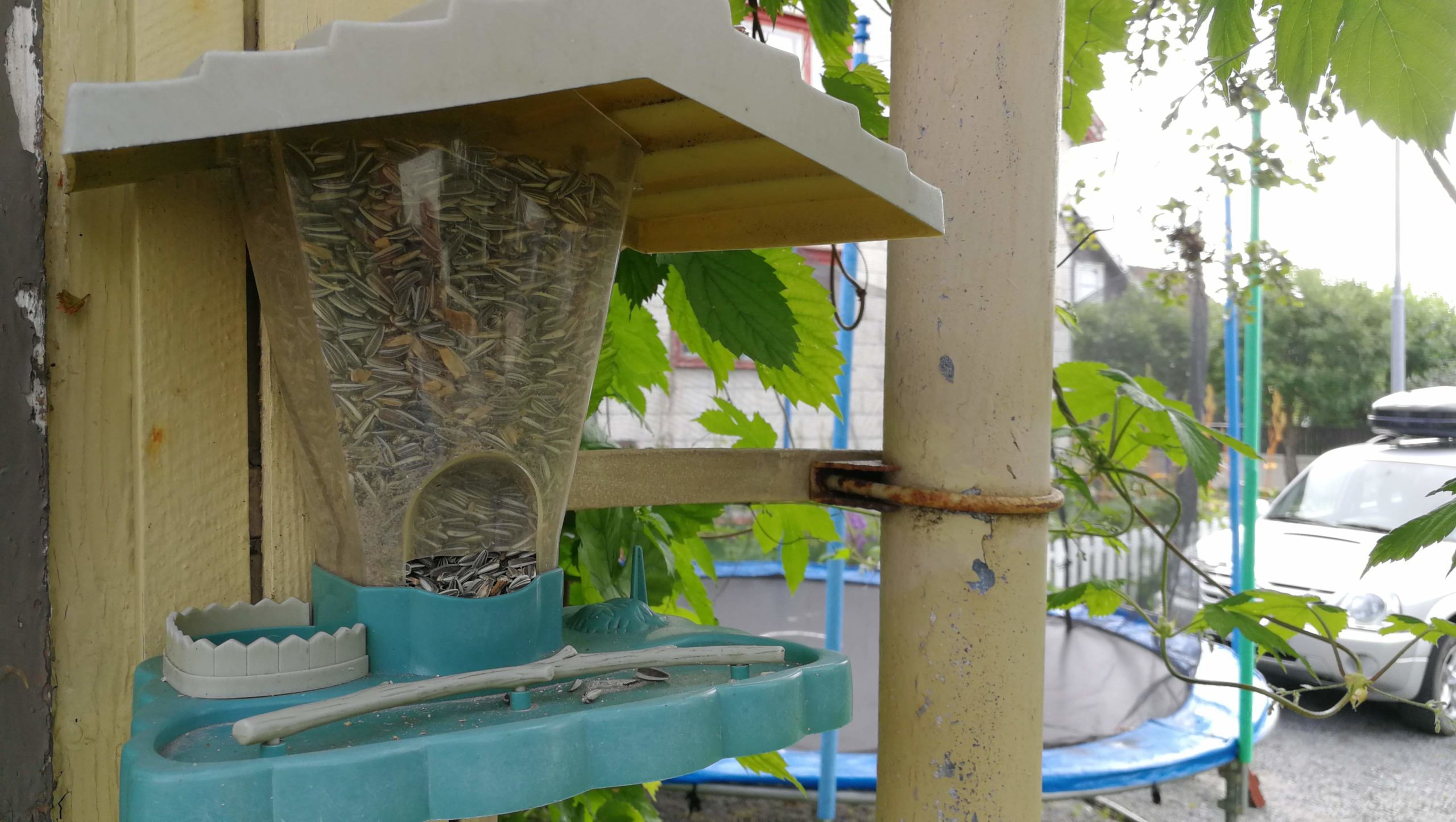 Jeg har et fuglematehus montert på en noe forfalt garasje som mest brukes til oppbevaring (gjør ikke alle det, også de nye?)