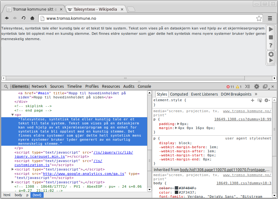 Jeg bruker utviklerverktøyet i Google Chrome, men de fleste nettleserne har et tilsvarende innebygd verktøy. Det fine med et slikt verktøy er for eksempel at du kan endre på CSS og HTML i en hvilken som helst side og se resultatet direkte.