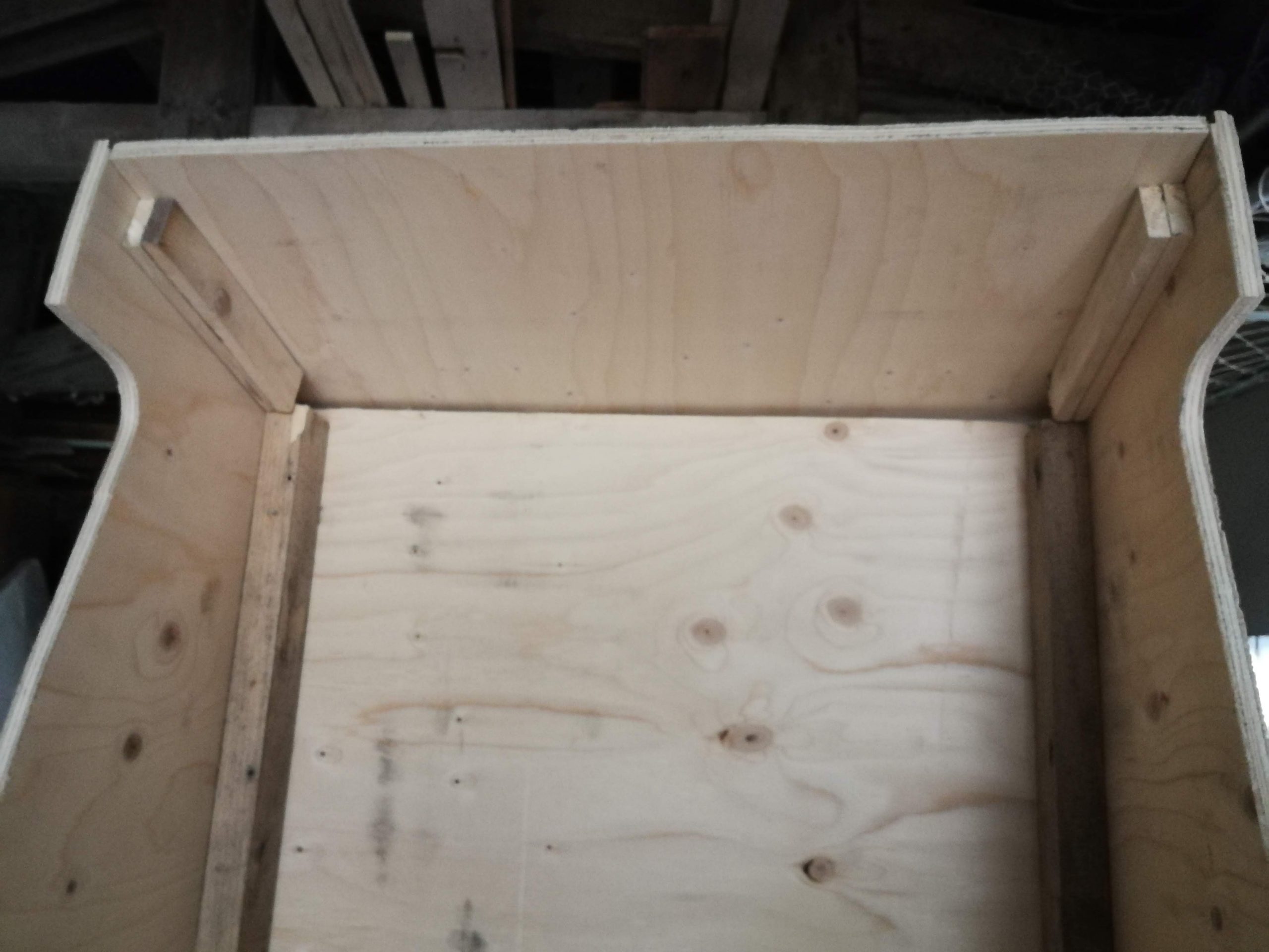 I wanted it to be a full size cabinet and not those table stands, and so I had to strengthen it as much as I could and create a floor plan in it for future pegs or wheels.