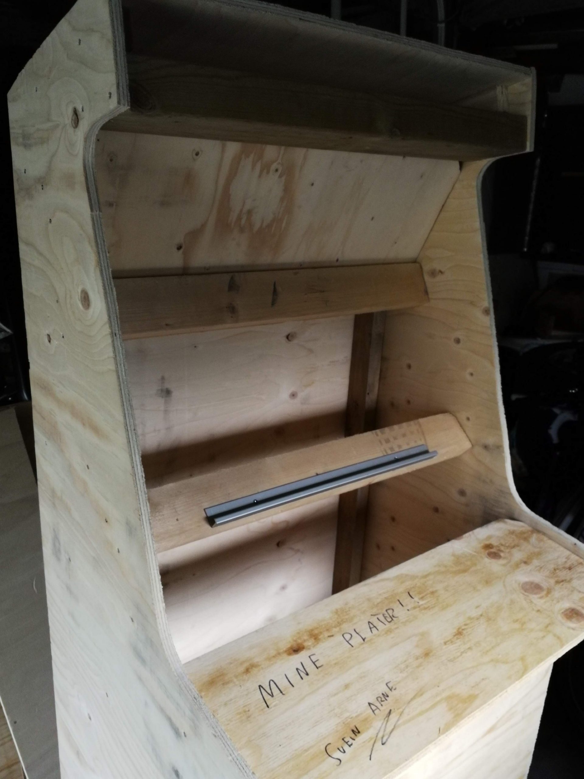 A friend got me a few wooden boards used as top protection on euro pallets. The rest I had already lying around, except plexi glass and the joystick-button kit.