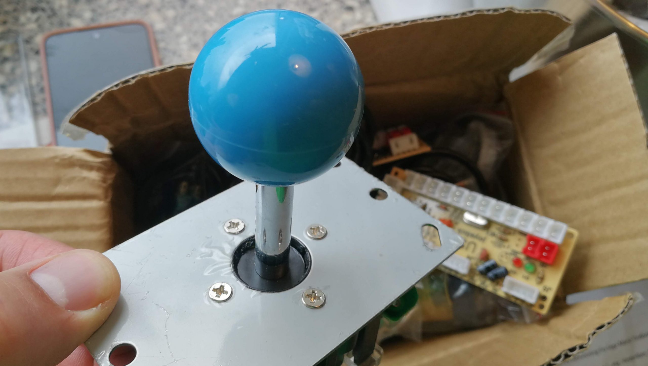After drilling out holes for the joysticks and buttons (again, based on what sensible placement/spacing was used in pictures I found online), it was easy to connect it to the mini computers USB ports, and didn’t require soldering.