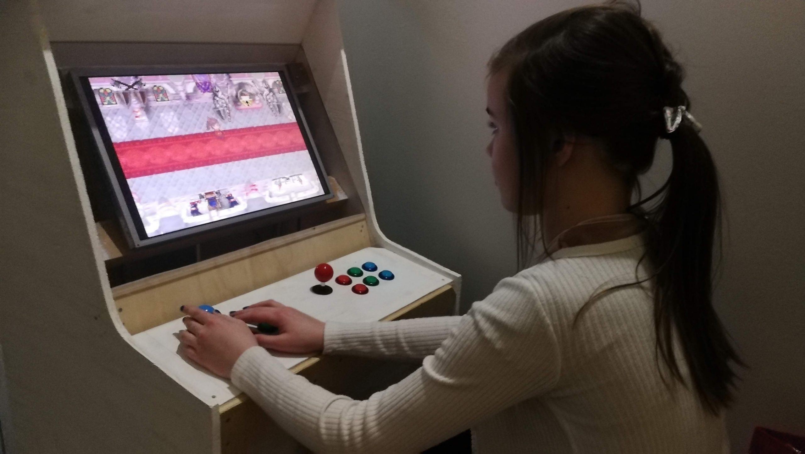I installed an old monitor stripped of its frame and a set of old PC speakers. For the game computer I used a raspberry pi mini computer which I have worked with before on various projects.