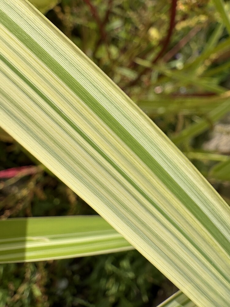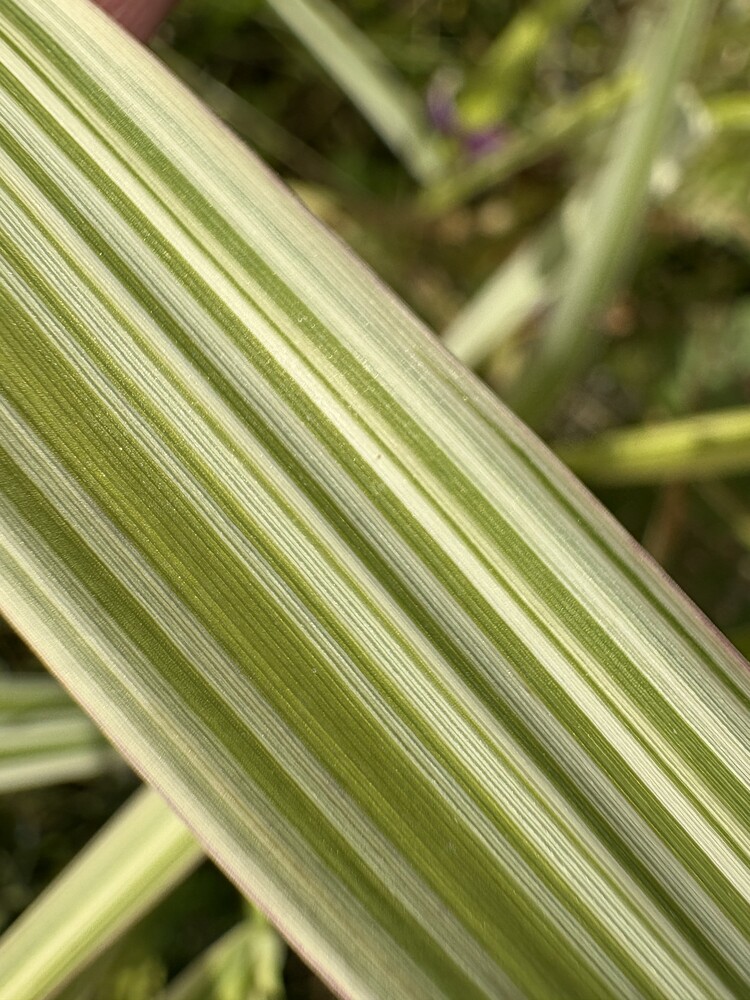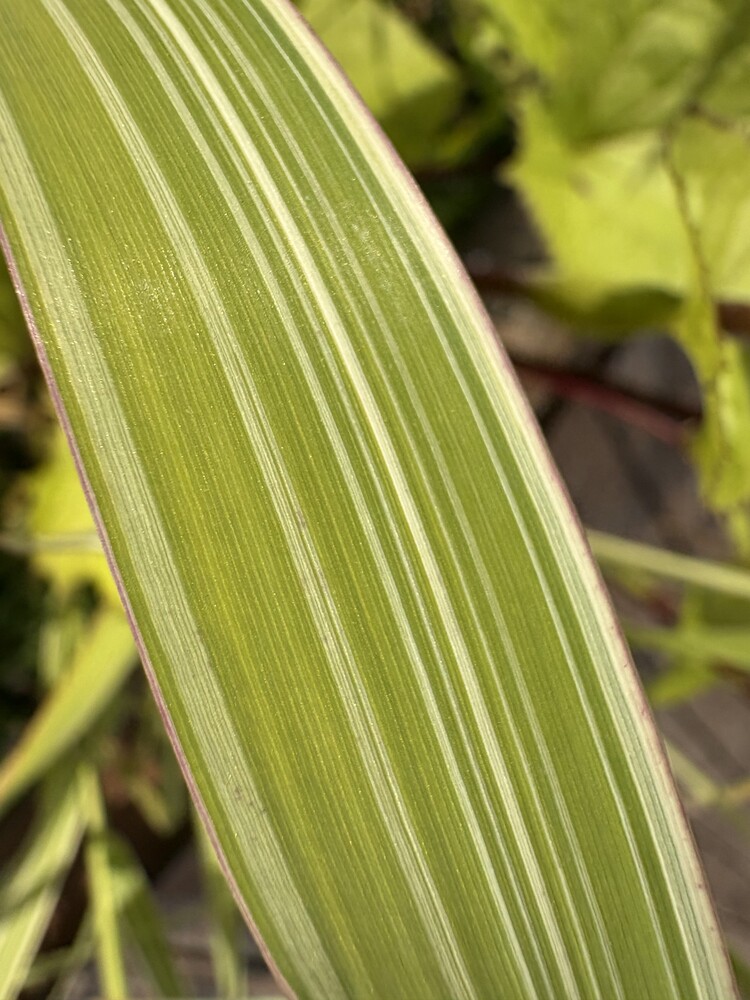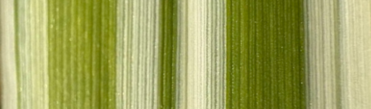 Jo, etter at jeg hadde tatt et bilde av planten, innser jeg noe spennende. Båndgressplanten har varierende klorofyllinnhold i bladene, men denne variasjonen er ikke konsekvent. Hvert blad skiller seg faktisk fra de andre i mønster, slik barkoder er forskjellige og inneholder unik kodet informasjon.