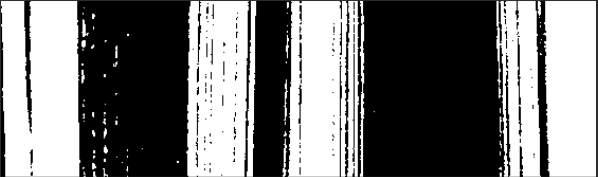 Hva ville skjedd om jeg tok en barkodeskanner og leste av planten? Ville den avgitt noe informasjon tro? Jeg tar et utsnitt av det ene plantebildet, roterer det og bruker Inkscape til å spore kontrastene.