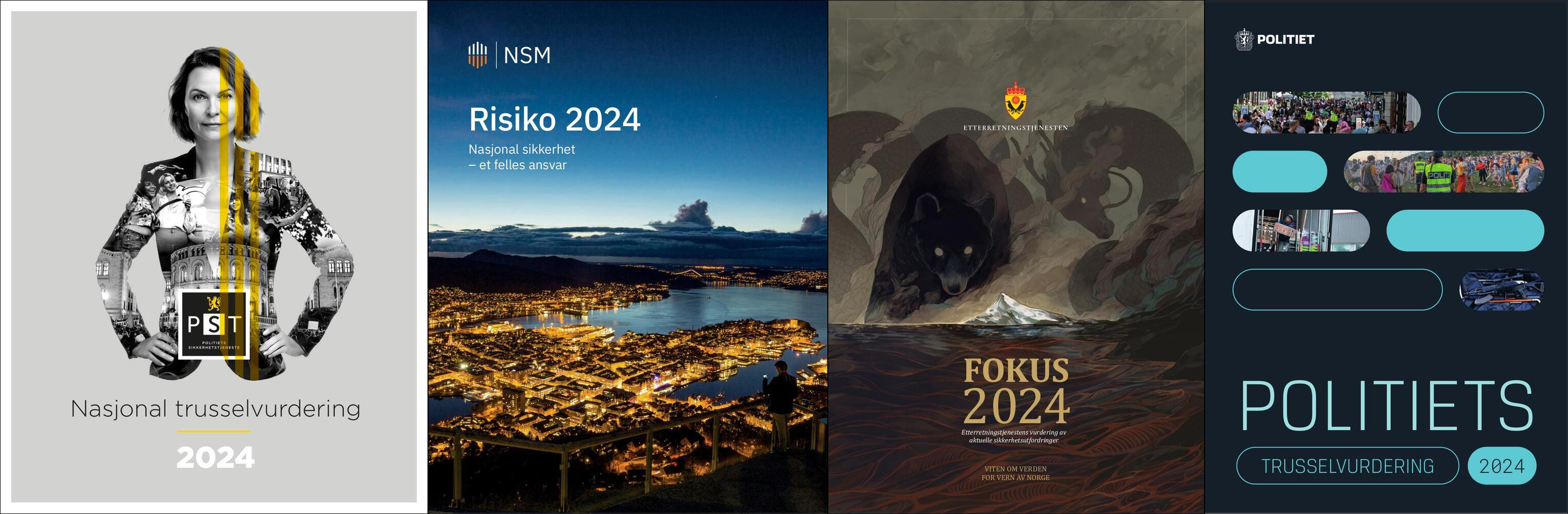 Politiets sikkerhetstjeneste (PST), Etteretningstjenesten, Nasjonal sikkerhetsmyndighet (NSM) og Politiet slipper hvert år sine rapporter for sin vurdering av trusselbildet. Last de ned her: