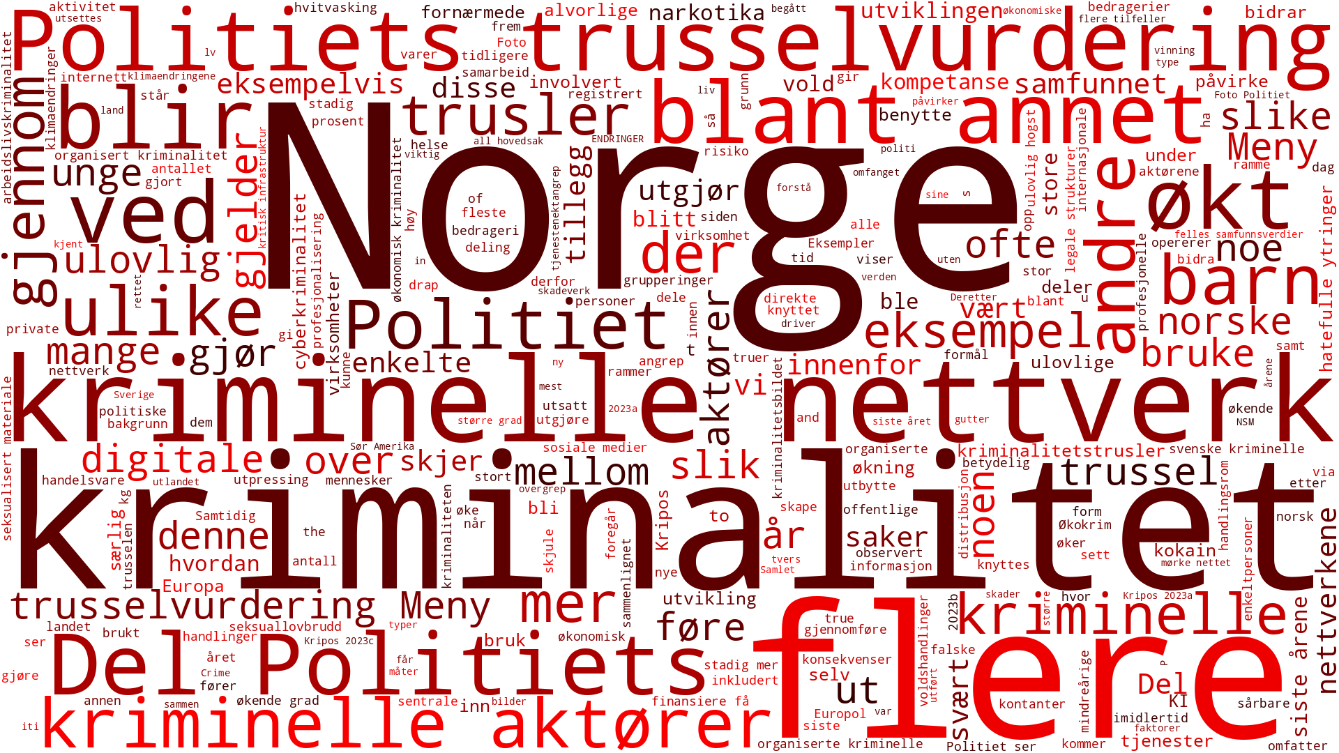 Ord og bokstaver brukt i rapportene for trusselbildet 2024