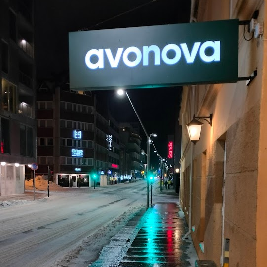 For ett år siden var jeg på en Tromsøtur gjennom jobb og bodde på et hotell i Grønnegata. Jeg stod utenfor hotellet og ventet på noen. Plutselig la jeg merke til et lysende skilt oppe på veggen. avonova stod det.