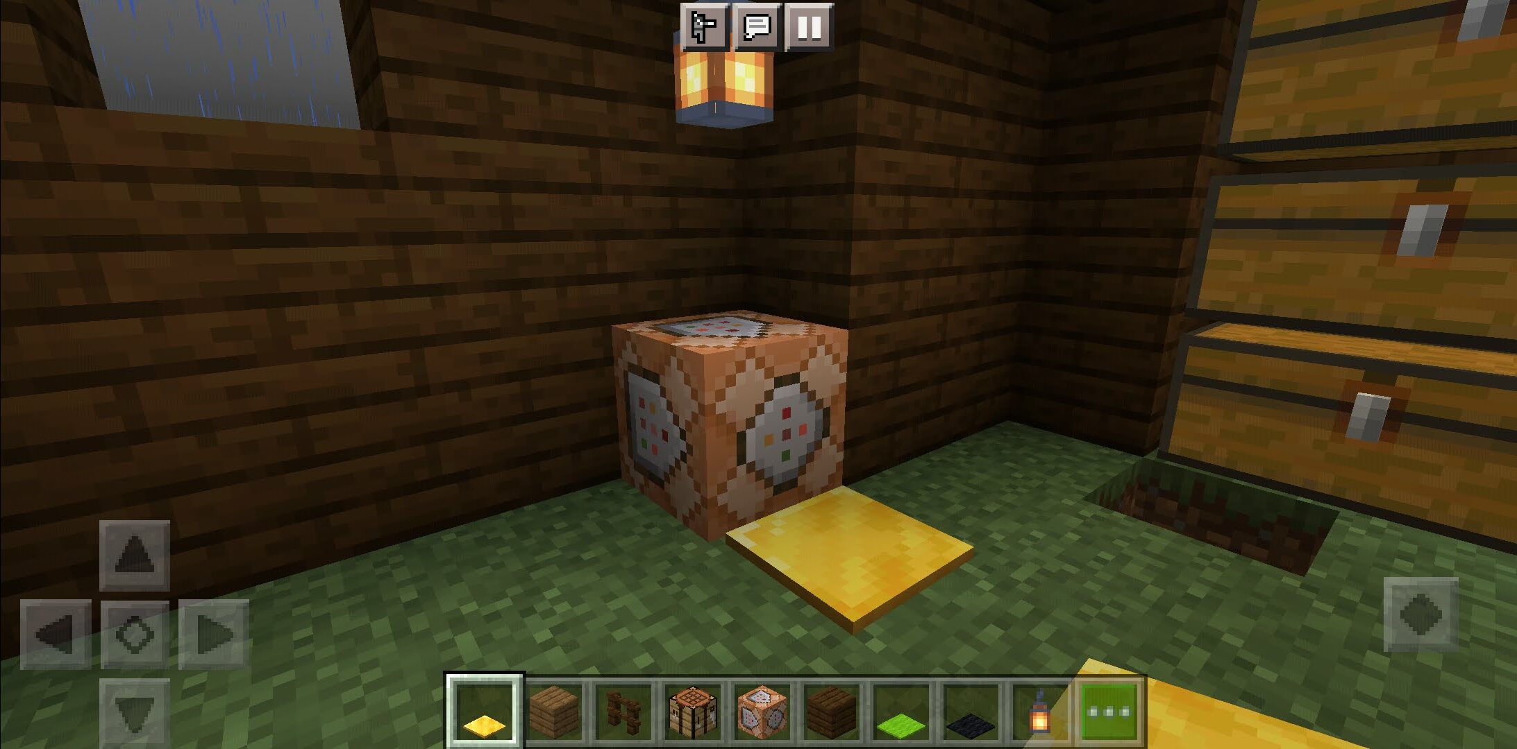 Hvor @s betyr meg selv og 10 er antallet blokker. Da har jeg det jeg trenger for å sette i gang. Jeg plasserte en slik blokk i huset og mens jeg står foran den, trykker jeg på den. Da fikk jeg opp en skjerm som lot meg sette inn en kommando og betingelsene