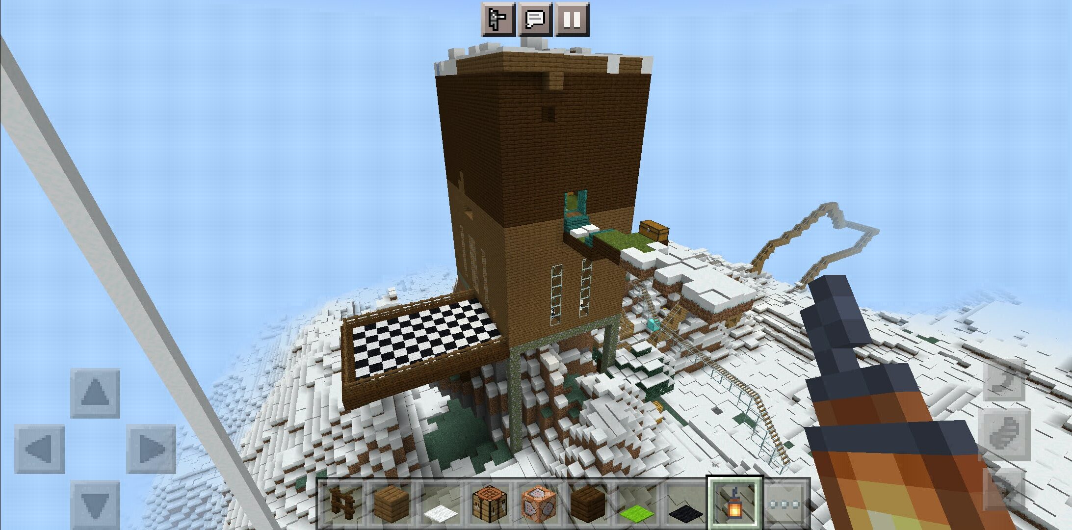 Vi bygde et digert hus sammen og jeg fløy av gårde og bygde en havn et annet sted. Så noterte meg koordinatene, slik at jeg kunne teleportere mellom de to stedene i alle var på ett sted. Så tenkte jeg, er det ikke mulig å teleportere litt smartere? Må jeg gjøre det manuelt med en kommando i chatten hver gang? Ungene visste ikke hvordan det kunne gjøres, men sa at det går sikkert an. Jeg søkte litt på nett og det meste av teleportering er visstnok til underverden gjennom Obsidian-portaler. Lite om forflytting intert i samme verden.