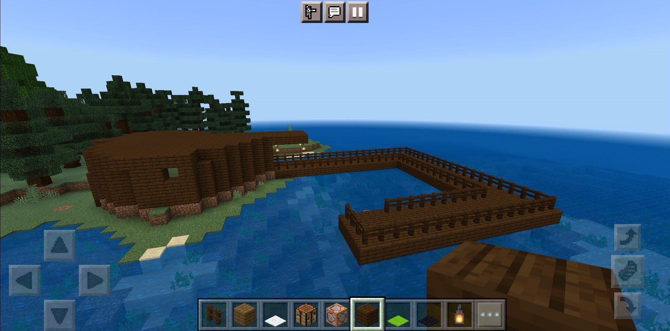 Etterpå fikk jeg alt til å fungere igjen, som forklart over. Her er havna og huset vi bygde sammen: