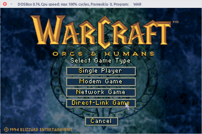 Jeg lastet også ned den førte versjonen av Warcraft, som nå er abandonware på nettet. Det fungerte kjempefint, kjørte med en gang i DOSBox, uten å gjøre noe som helst: