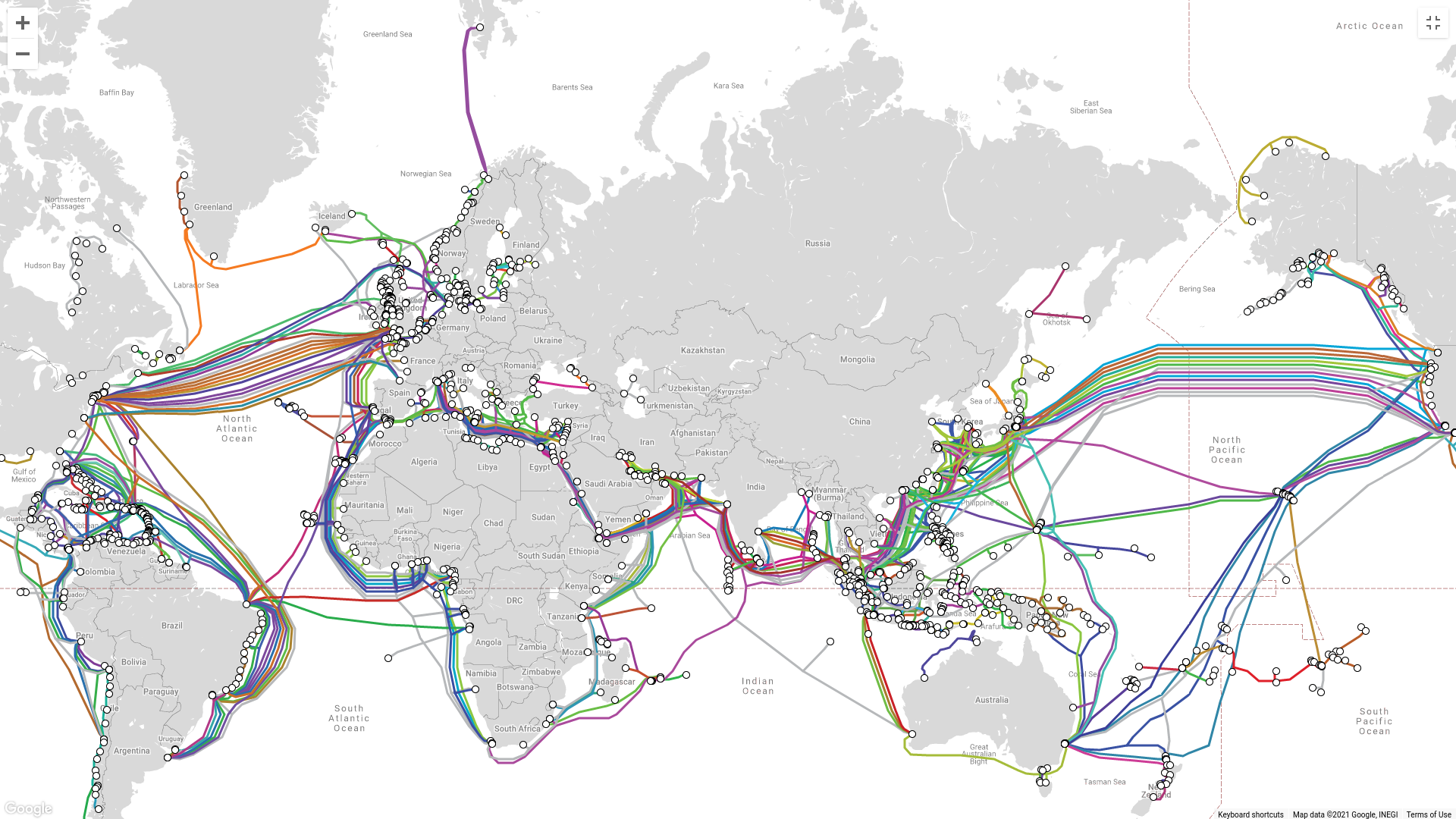 Idag er det mange kabler på bunnen av havet, noen så lange som 13 000km, og ikke bare rett over Atlanteren, men forbindelser mellom flere kontinent og verdensdeler. De bruker også ikke lengre kopper, men optiske kabler, fiberoptikk, lys: