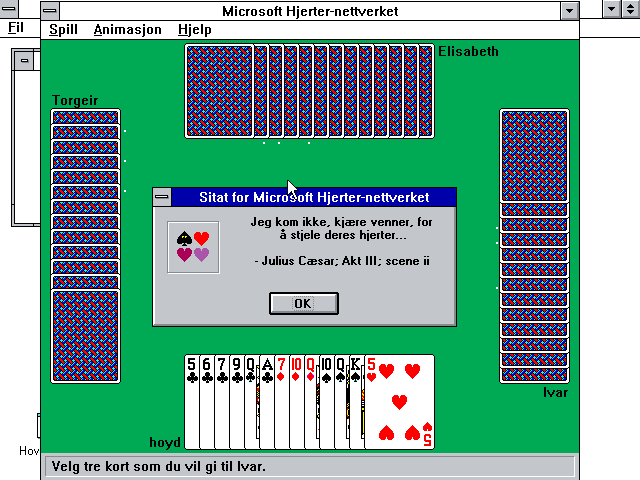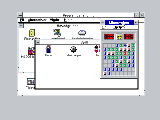 Windows 3.11 also comes with three games: Solitaire, Minesweeper and Hearts.