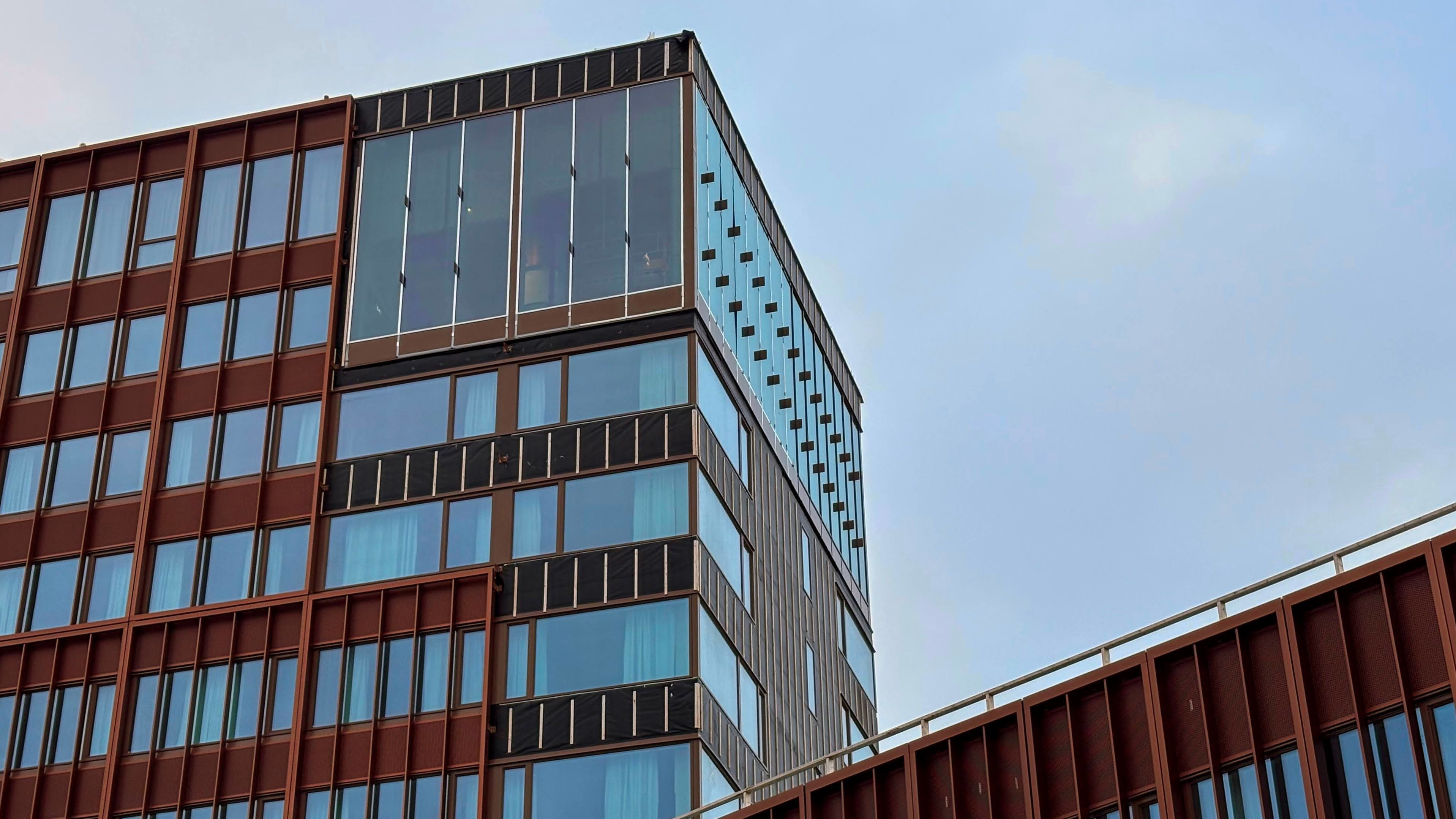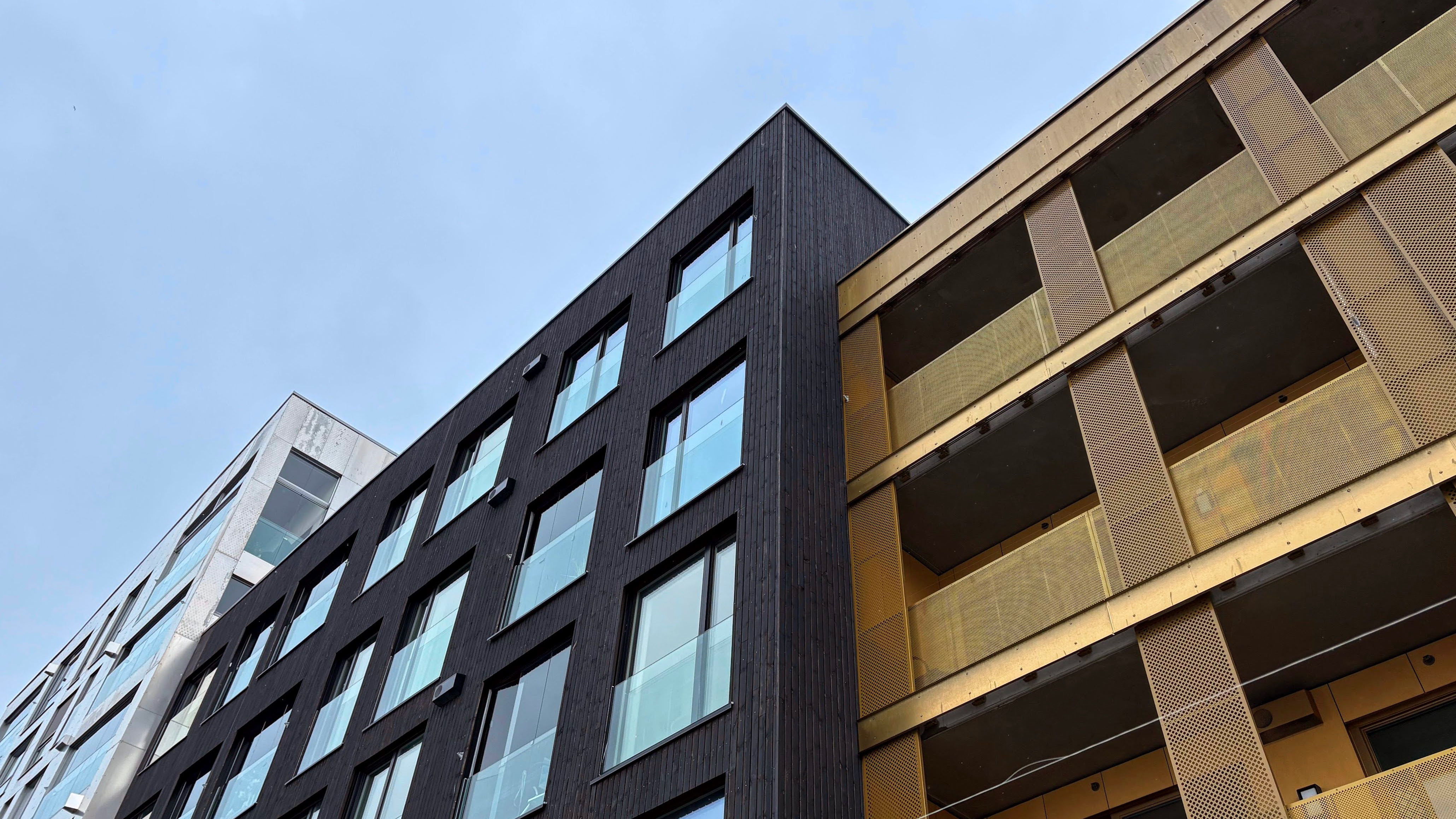 Jeg skulle møte noen kolleger for å spise på et av de nye utestedene i bydelen, og fra bakkeplanet rettet jeg blikket den andre veien, oppover. Øynene mine festet seg straks på noen fine linjer av arkitekturen mot himmelen.